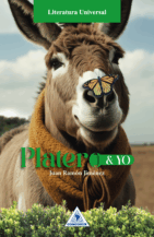 Platero es pequeño, peludo, suave; tan blando por fuera, que se diría todo de algodón, que no lleva huesos. Solo los espejos de azabache de sus ojos son duros, cual dos escarabajos de cristal negro. Lo dejo suelto y se va al prado, y lo acaricia tibiamente con su hocico, rozándolas apenas, las florecillas rosas, celestes y gualdas… Lo llamo dulcemente: ¿Platero? Y viene a mí con un trotecillo alegre, que parece que se ríe en no sé qué cascabeleo ideal.