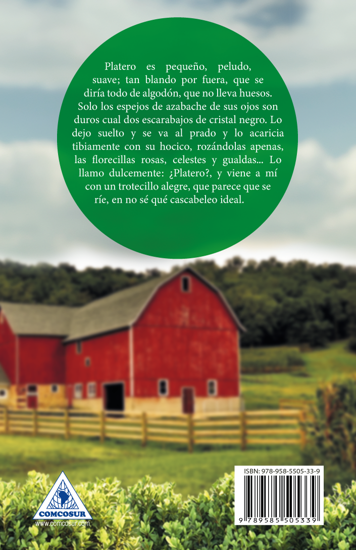 Platero es pequeño, peludo, suave; tan blando por fuera, que se diría todo de algodón, que no lleva huesos. Solo los espejos de azabache de sus ojos son duros, cual dos escarabajos de cristal negro. Lo dejo suelto y se va al prado, y lo acaricia tibiamente con su hocico, rozándolas apenas, las florecillas rosas, celestes y gualdas… Lo llamo dulcemente: ¿Platero? Y viene a mí con un trotecillo alegre, que parece que se ríe en no sé qué cascabeleo ideal.